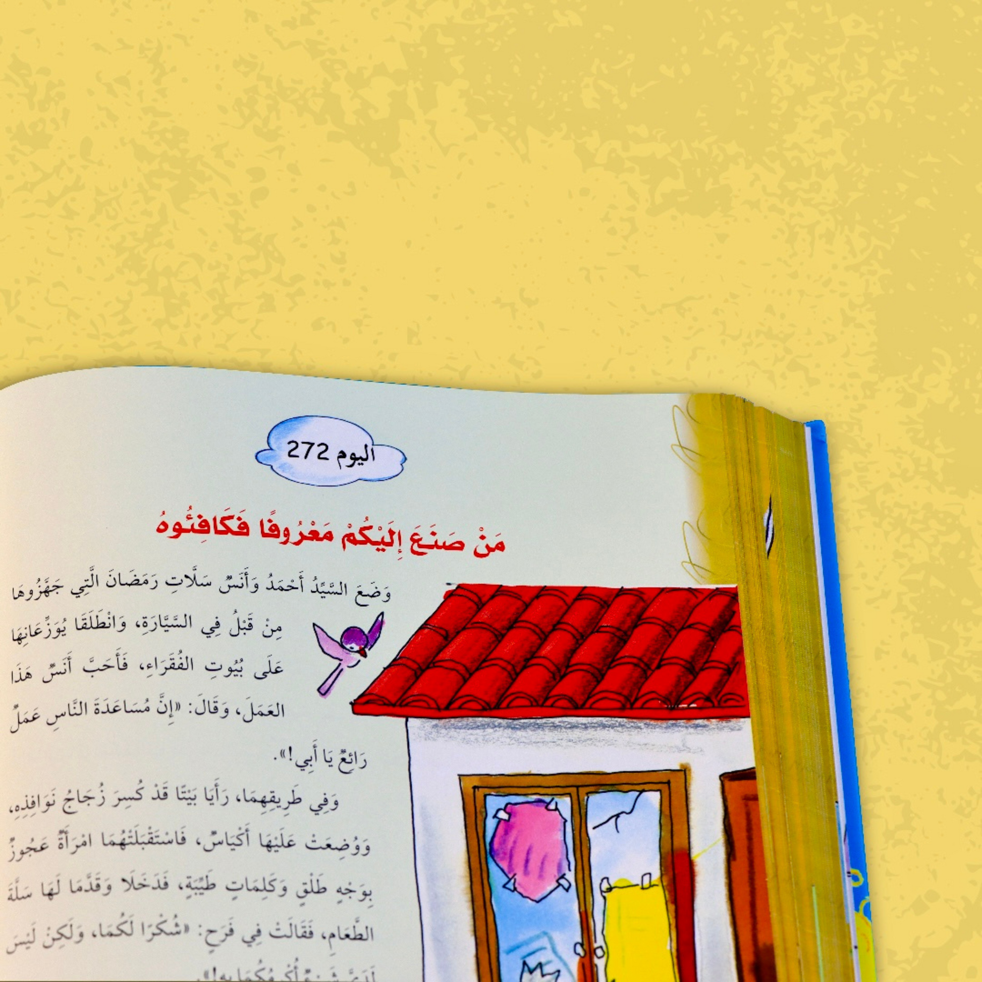 "365 يومًا مع..." يتلخص في بناء كتابٍ من فلسطين أربعة 365 قصة مختارة من تعاليم ديننا العظيم وسي وأقوال لا تشير إلى الحبيب صلى الله عليه وسلم، بحيث يتمكن أهل قراءة قصّة واحدة يوميًّا من خلال عام واحد. 🗓️📚