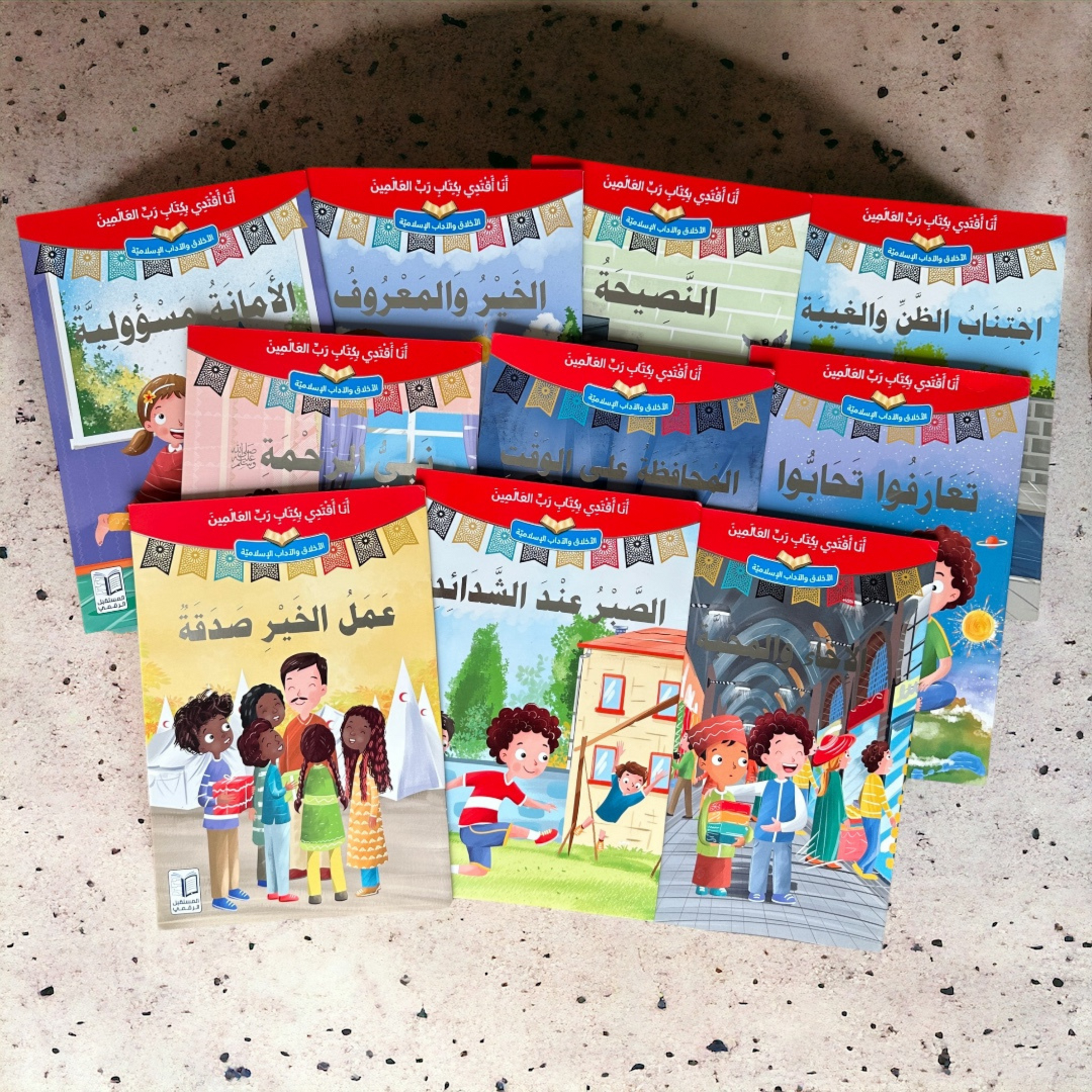 سلسلة قصصيّة تربويَّة تعلّم ناشئتنا الصّغار القيم الإسلاميَّة، كالتّحلّي بالصَّبر والأمانة ومحبَّة الآخرين واجتناب الظّنّ والغيبة وغيرها من القيم الّذي تنمّي كيان الطّفل وشخصيَّته القويّة المبنية على أسس أخلاقيّة متينة، بناءً على آيات كتاب الله (عزَّ وجلّ)، مدعَّمة برسوم جذّابة وأسلوب ممتع ولغة سهلة وأفكار قريبة من الأطفال تعكس مشاعرهم ونظرتهم إلى العالم والآخرين، مع سؤالٍ في نهاية كلّ قصّة يُجيب عنه الطّفل على ضوء ما تعلَّمه منها.