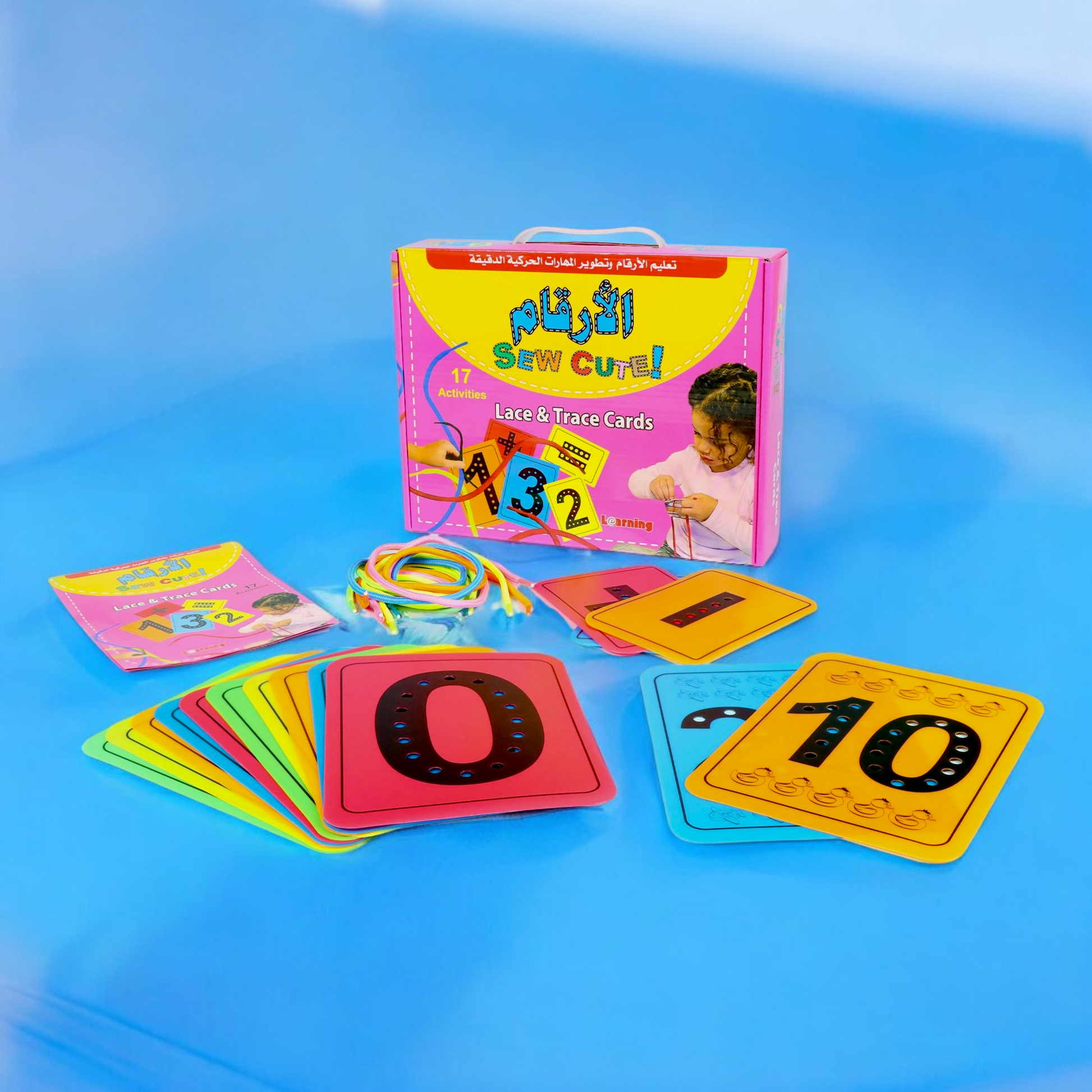 صمّمت هذه البطاقات لتعريف الطفل على أشكال الأرقام، وتحفيز المهارات الحسية - الحركية والمهارات الحركية الدقيقة عند الأطفال.