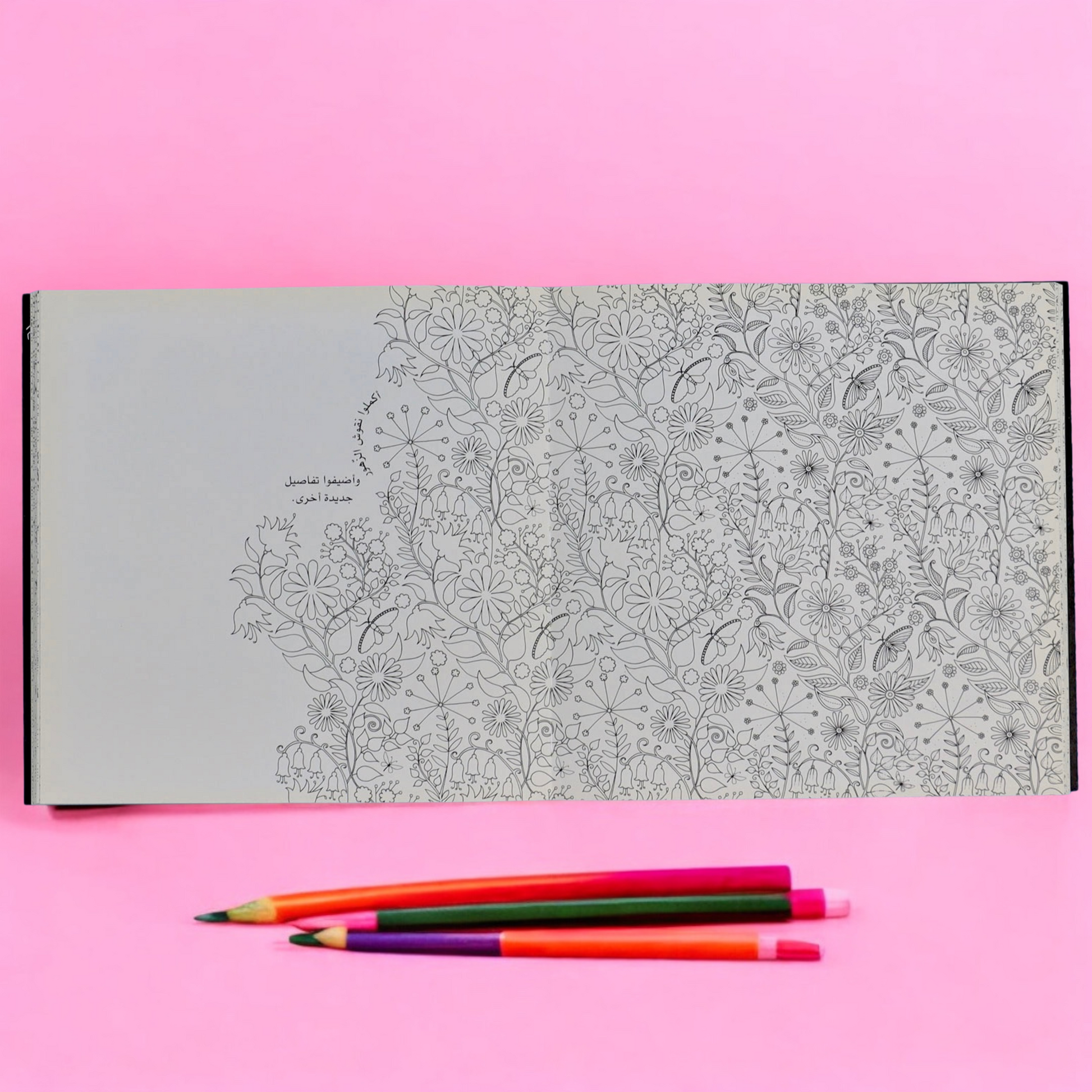 كتاب الحديقة السرية : كتاب التلوين ورسم النقوش والألغاز مع علبة تلوين