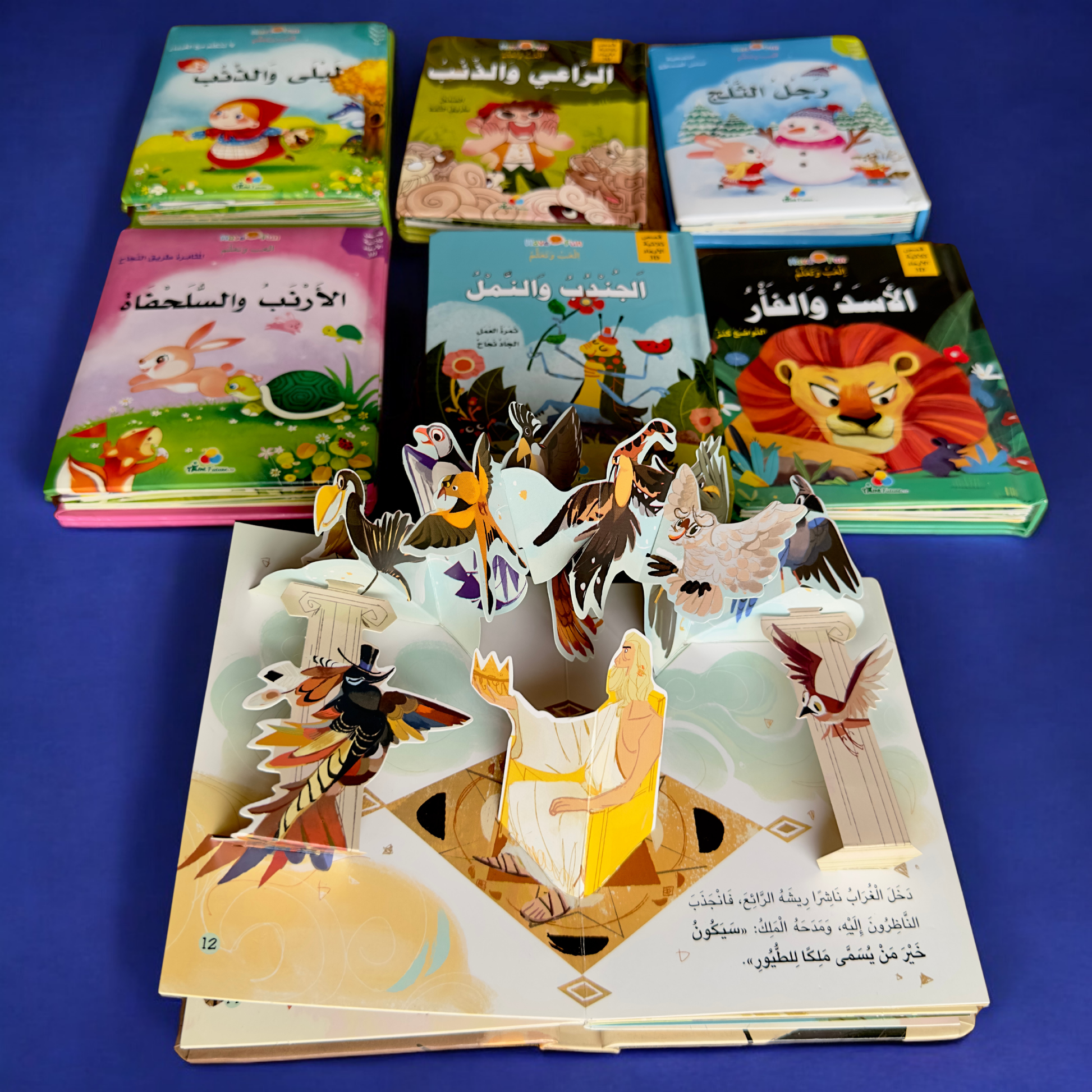 قصص تربويّة تفاعليّة ثلاثيّة الأبعاد للطّفل مناسبة لمرحلة التَّعليم المبكّر، تحبّبه بالقراءة والمطالعة مع أبطال بكل قصة، تجعله يخوض بعقله معها أمتع المغامرات برفقة مشاهد القصص المجسمة المنبثقة بشكلٍ مميّز.